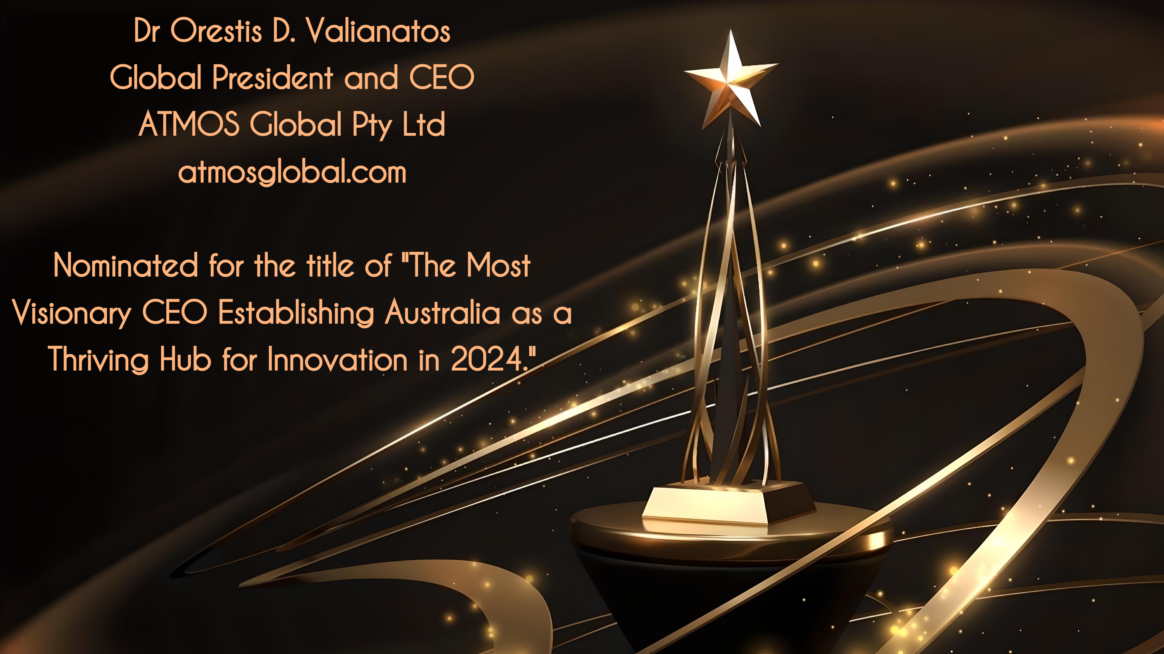 ATMOS Global ™ is pleased to announce that Dr. Valianatos has been nominated for the title of 'The Most Visionary CEO Establishing Australia as a Thriving Hub for Innovation in 2024' (official press release) by a renowned international Entrepreneur Magazine. The editorial team recognised the strength of our brand presence and Dr. Valianatos' leadership journey. The upcoming special edition of the magazine will feature the award to inspire audiences worldwide.